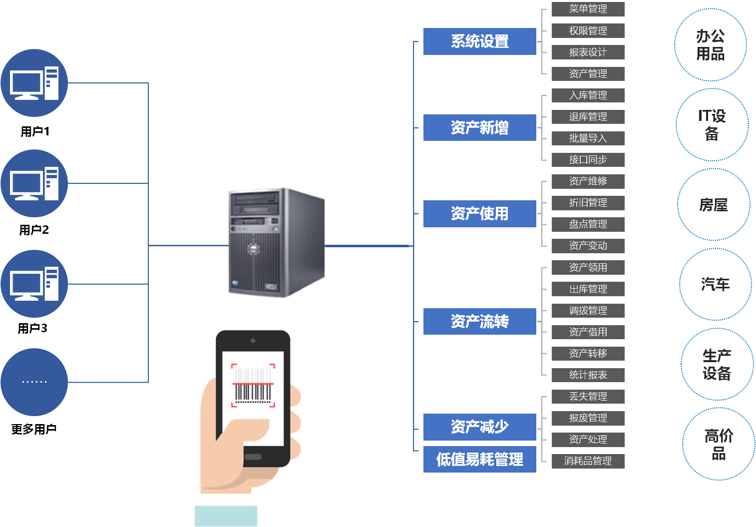 周边硬件:服务器、数据库、电脑、条码打印机、手持终端、打印耗材
